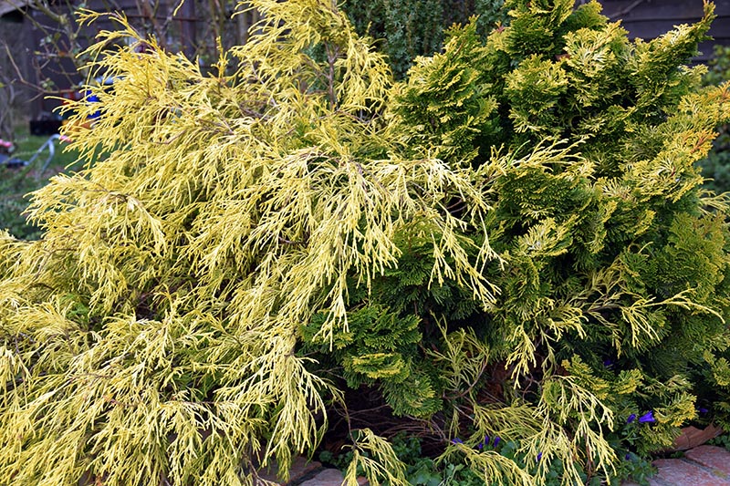 Chamaecyparis pissifera ‘Filifera Aurea’ et ‘Filifera Aurea Nana’