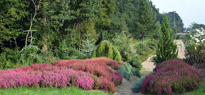 La propriété est située au lieu-dit Heydt (bruyère en français). Ce nom « Heydt » vient d’une époque lointaine. Les landes composaient un paysage où poussaient spontanément les bruyères. Naturellement, nous avons envisagé un jardin prédisposé à accueillir des plantes de terre acide en imaginant de grands à-plats remplis de Calluna et d’Erica. Deux genres fort semblables, du moins à première vue.