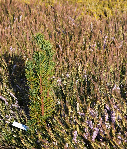 Actuellement, il n’y a qu’un seul Cephalotaxus au jardin. Installé depuis un an, notre Cephalotaxus harringtonia ‘Fastigiata’ ressemble un peu à un pin, mais le feuillage pourrait aussi rappeler celui de l’if. Notre fréquentation si récente avec ce bébé, ne permet pas d’en dire davantage.
