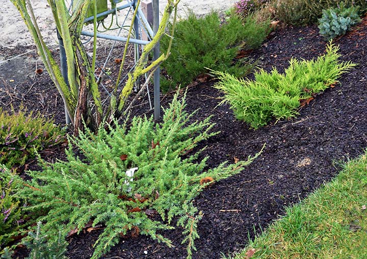 Nombreux sont les Juniperus couvre-sols. Notre préféré est J. communis ‘Green Carpet’.
