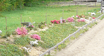 La gestion d’une école d’équitation était notre vie professionnelle et mon épouse entretenait de jolis pots et bacs d’annuelles afin d’embellir les abords de la cafeteria. Une cinquantaine de contenants garnis chaque printemps depuis 25 ans. Imaginant un moyen d’éviter ce travail, elle suggéra de remplacer l’éphémère par du permanent.