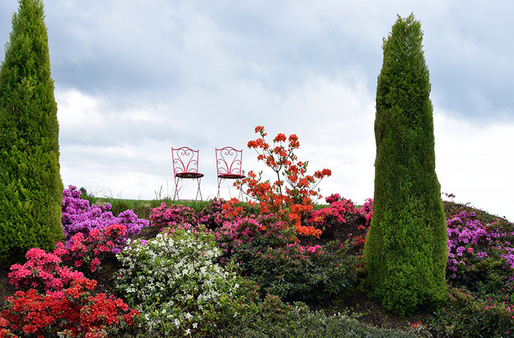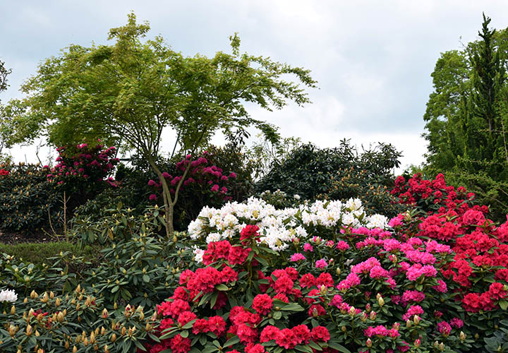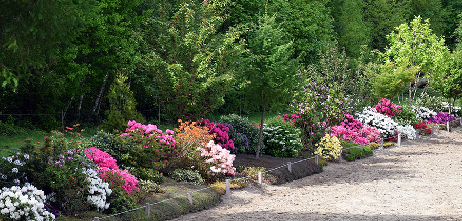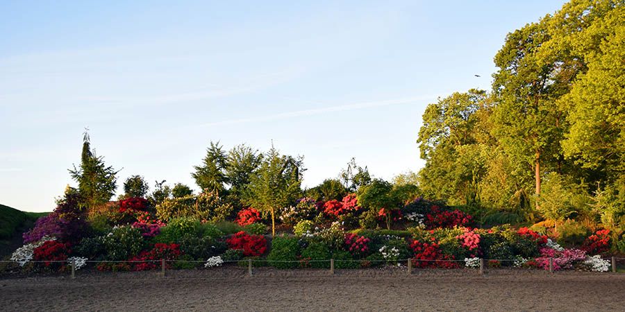 Le jardin est situé à la « La Heydt ». Ce mot signifie « les bruyères ». Jadis, les callunes prospéraient. Ainsi, le choix d’installer des plantes de terre de bruyère vint naturellement d’autant que les rhododendrons et les azalées figurent parmi les végétaux aux plus beaux épanouissements.