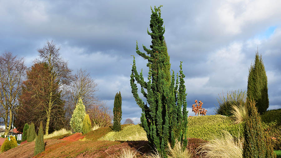 Afin de donner du relief sans occuper trop d’espace, les conifères érigés proposent un ample panel. Voilà l’essentiel de ce que l’on voit sur les talus !